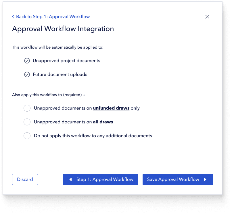 Control how new workflows are applied, retroactively, only on unfunded draws, or moving forward.