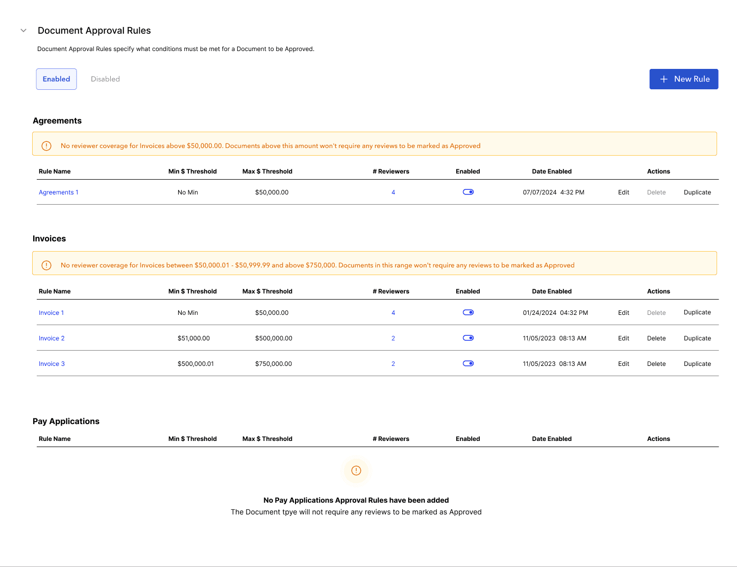 Rigidity — Approval rules were only set at the portfolio level, forcing the same logic across all projects, document types and dollar thresholds