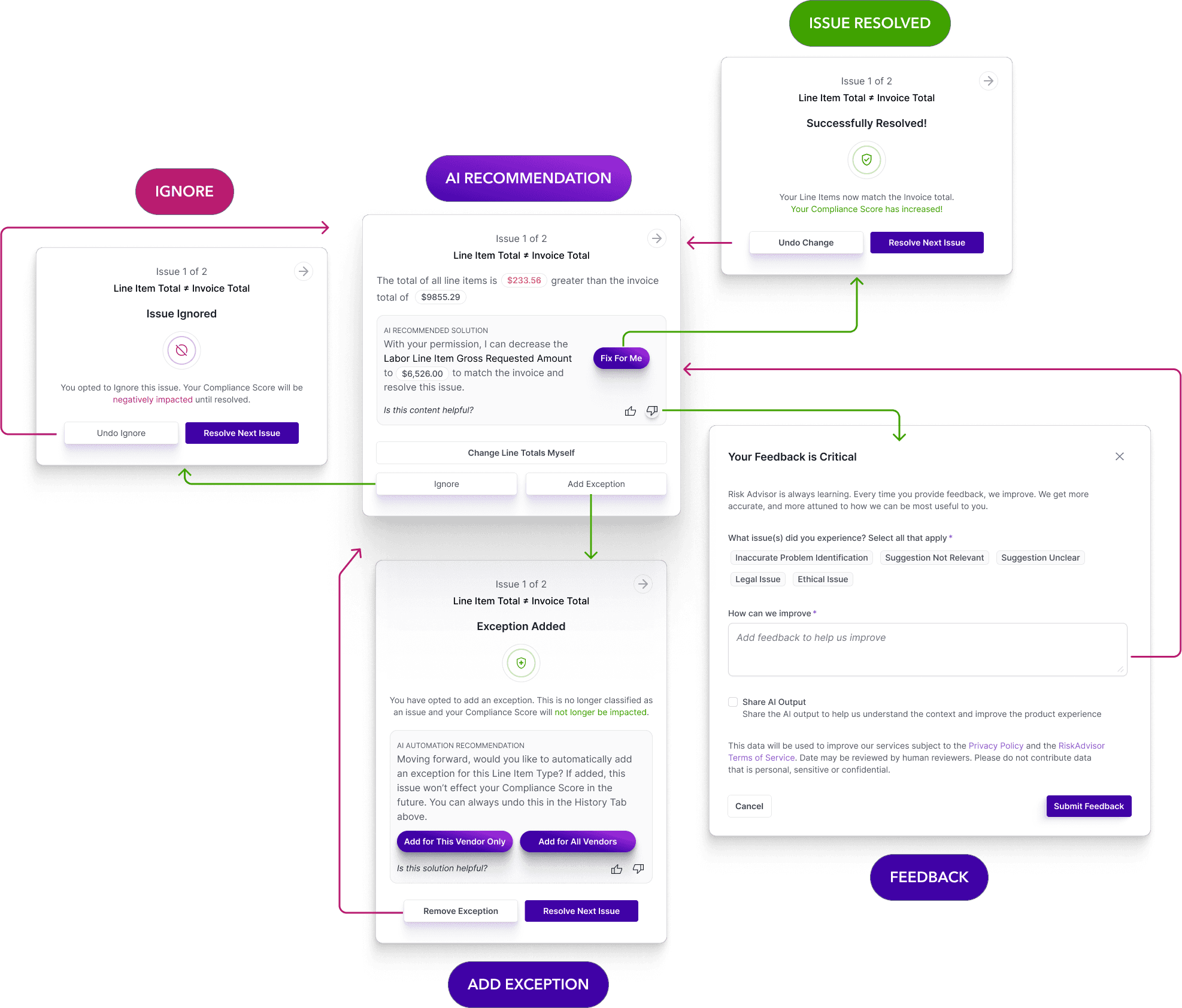 Included explainability: e.g., “Vendor not found in DB”, Ability to provide specific feedback